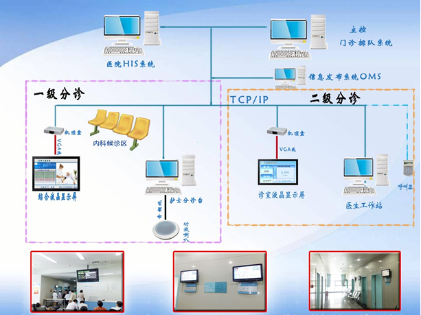 百思桥数字导医系统基于医院内部计算机网络,与医院HIS系统、PACS系统、LIS系统建议数据对接,采用全嵌入式美国SIGMA方案一体化液晶播放终端,实现门诊挂号显示、候诊区分诊显示、诊室分诊显示、化验取单显示、眼药排队演示、科室引导显示、医院宣教显示等各项功能。
